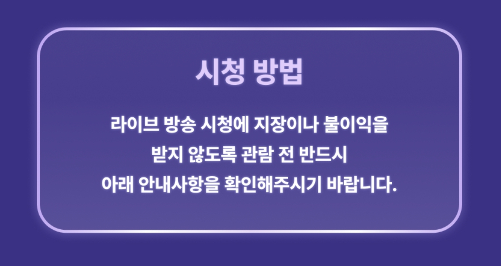- 온라인 생중계를 보실때는 인터넷 연결 상태를 미리 체크해두세요.